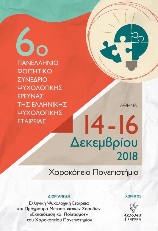 Το Συνέδριο διοργανώνεται από την Ελληνική Ψυχολογική Εταιρεία και το Πρόγραμμα Μεταπτυχιακών Σπουδών «Εκπαίδευση και Πολιτισμός» του Τμήματος Οικιακής Οικονομίας και Οικολογίας του Χαροκοπείου Πανεπιστημίου και θα λάβει χώρα στο Χαροκόπειο Πανεπιστήμιο από τις 14 έως τις 16 Δεκεμβρίου 2018.